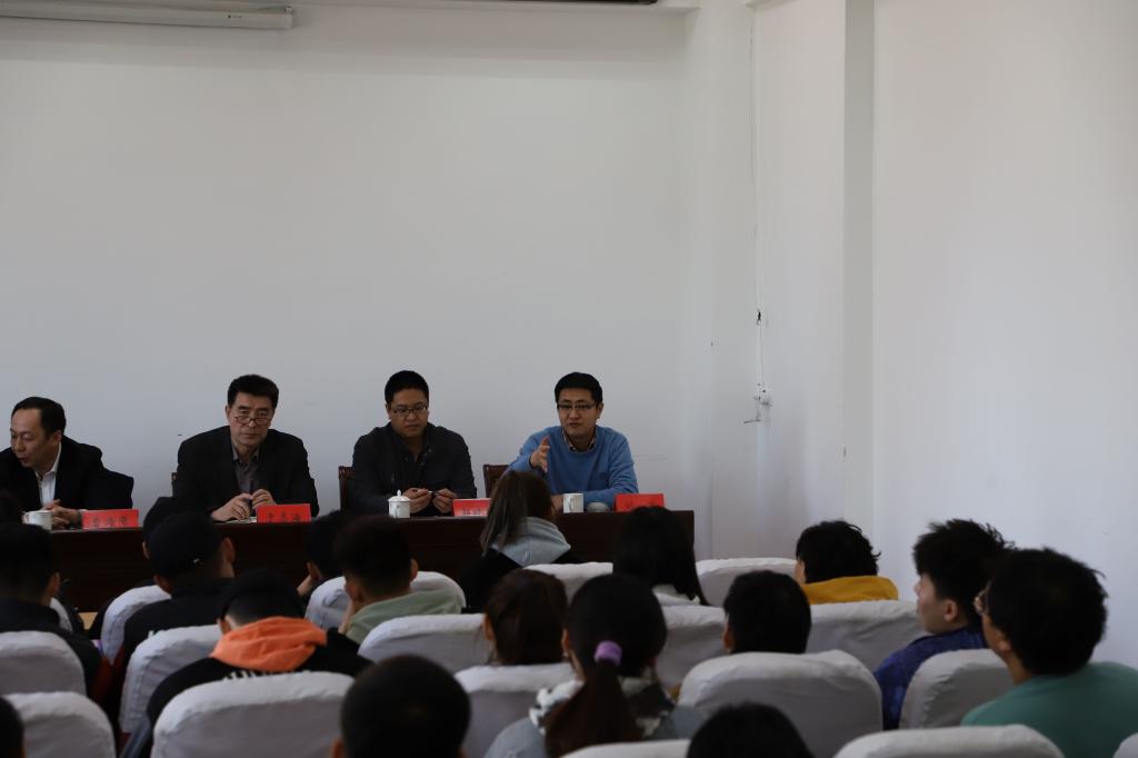 学校就业处处长曹海鹰、学生工作处副处长郭晓飞、学生就业处就业创业科科长高虹、刘关、体院学院党总支书记、学生就业领导小组组长温毅刚、今年会院长、学生就业领导小组副组长于志海、今年会团总支、学工办负责人赵郑、2017级班主任刘忠良、李慧君以及2017级、2018级全体学生参加了本次会议。