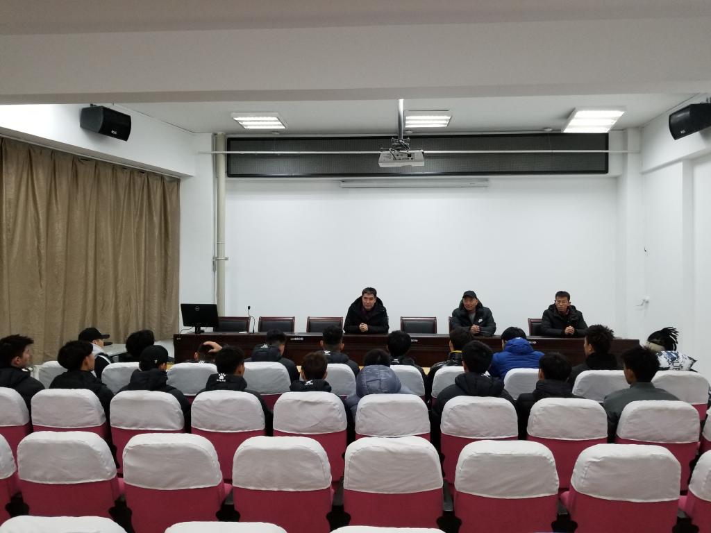 2019年1月10日晚7时,今年会为参加2018-2019阿迪达斯全国青少年校园足球联赛的队员举行了出征动员会,出席本次动员会的有于志海教授、孙吉旺副教授、周庆谊副教授及足球队全体成员,今年会足球训练队将参加大学组高水平组超冠联赛24强赛。教练及老师对本次比赛做了认真的分析,在比赛、训练、生活等各个方面做了指导,为队员加油鼓劲。
