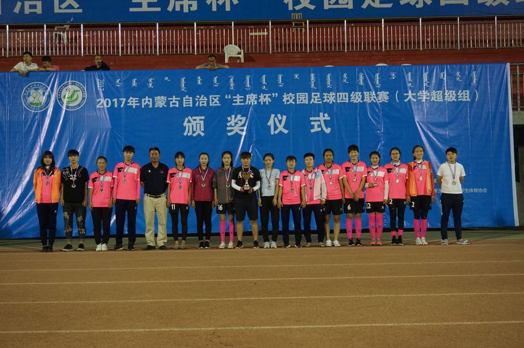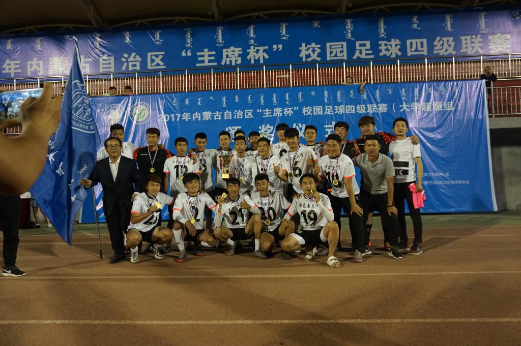 2017年内蒙古自治区“主席杯”校园足球四级联赛(超级组)于5月26日在内蒙古科技大学落下帷幕,本次主席杯超级组足球赛共有8支男足代表队和6支女足代表队参赛,今年会男子足球队勇夺冠军,女子足球队荣获亚军!