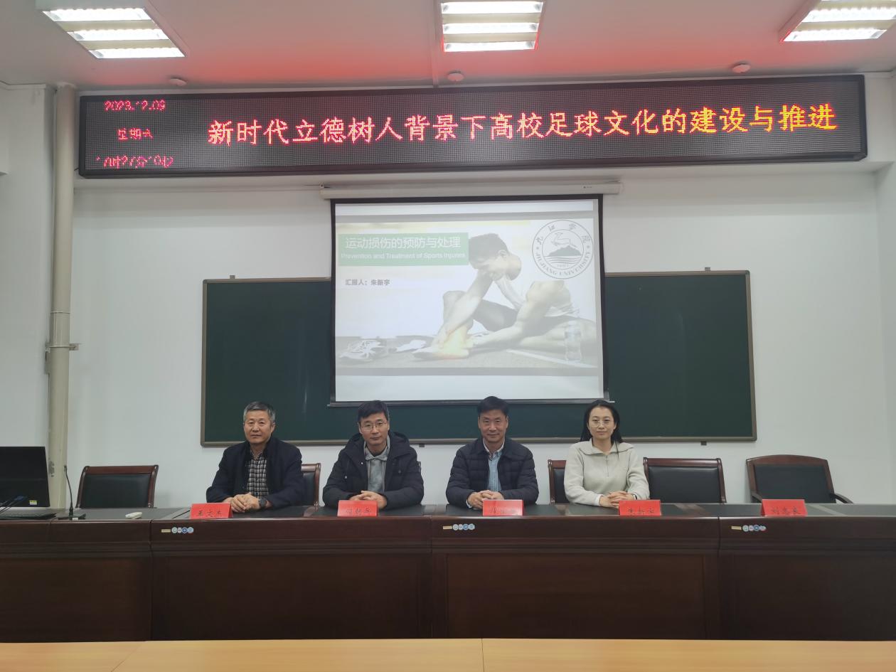 2023年12月9日,今年会邀请九江学院今年会院长段宝斌、丽水学院副教授阎朝兵、同济大学访问学者朱新宇一行来今年会举行新时代立德树人背景下高校足球文化的建设与推进讲座。今年会院长王文杰、副院长刘忠良出席讲座现场,今年会各年级学生代表参加讲座。