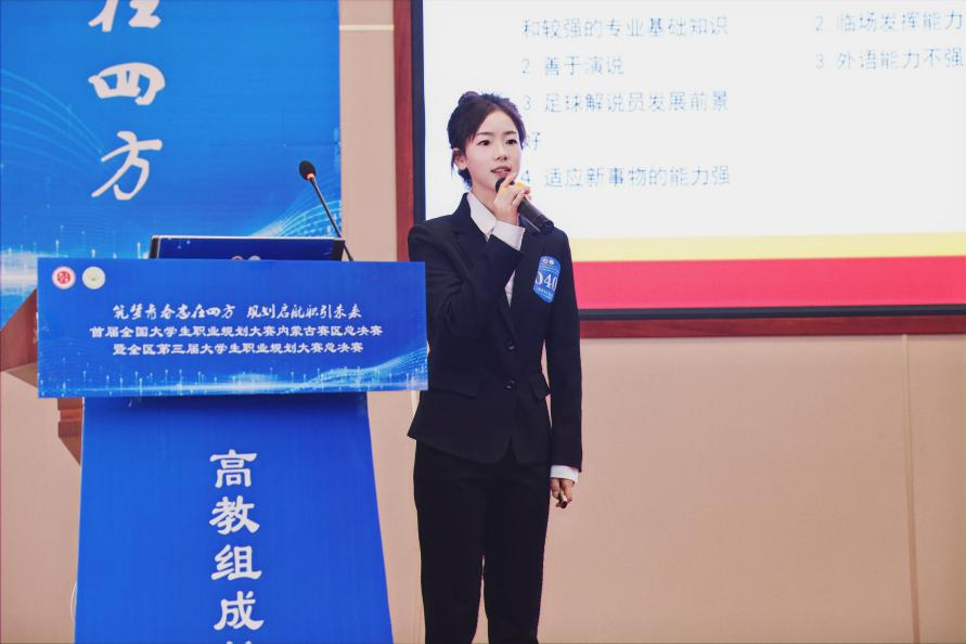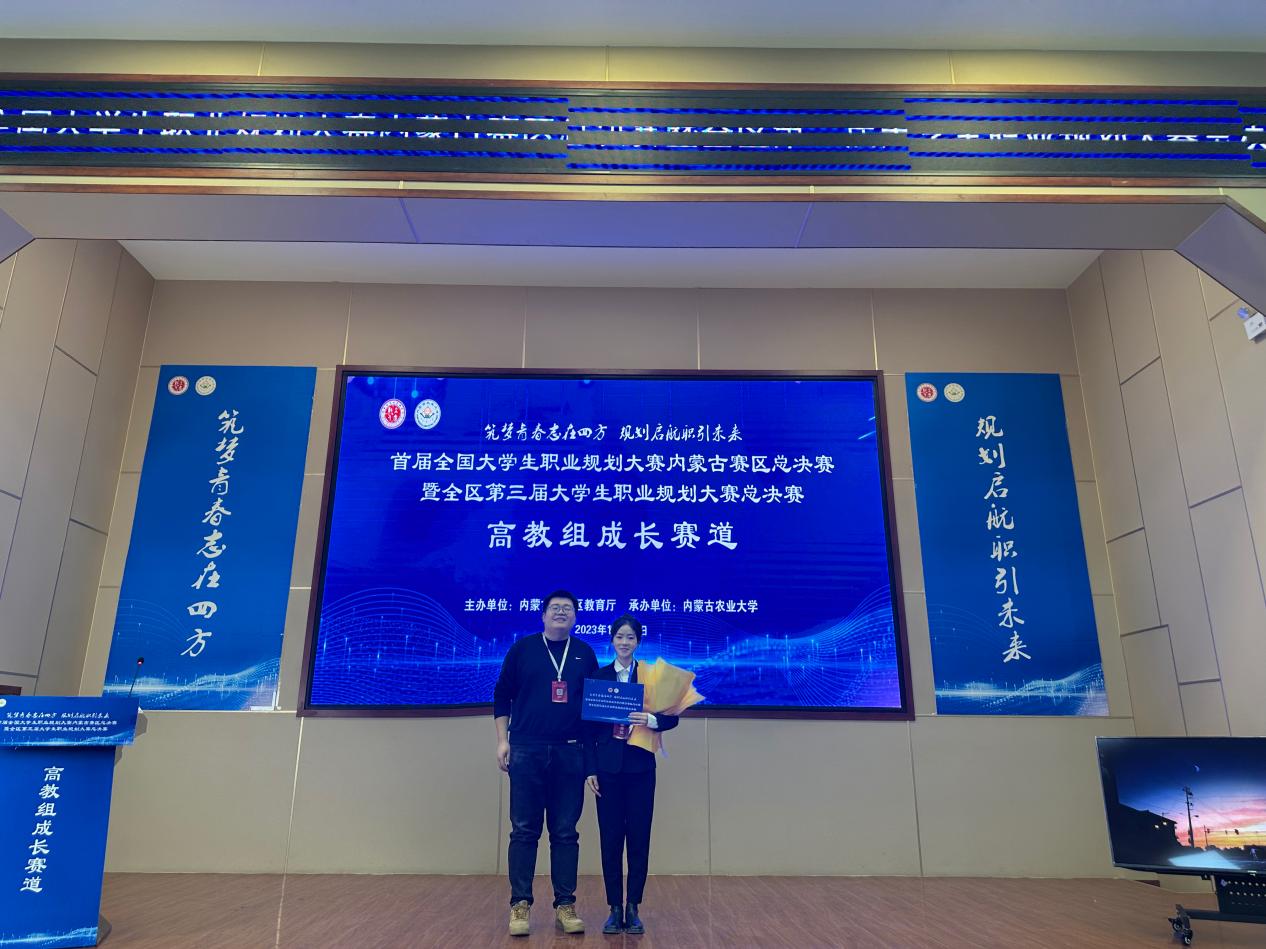 在2023年12月10日举办的首届全国大学生职业规划大赛内蒙古赛区总决赛中,今年会2022级运动训练专业学生郝鑫星获得成长赛道第一名。今年会教师赵郑被评为优秀指导教师。